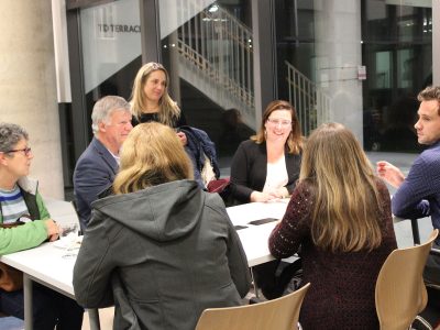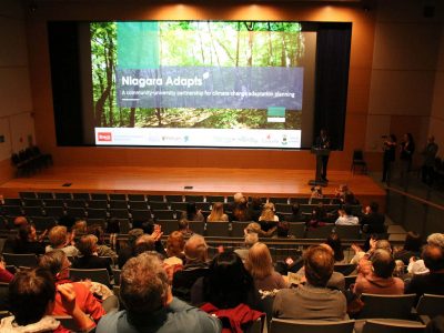 The launch event featured a screening of the film Resilience, followed by a panel discussion with climate coordinators from each of the seven municipalities involved in Niagara Adapts. The conversation continued during a reception event where members of the community were invited to speak with ESRC members, Resilience filmmaker John Anderson, and other members of the Niagara Adapts team.