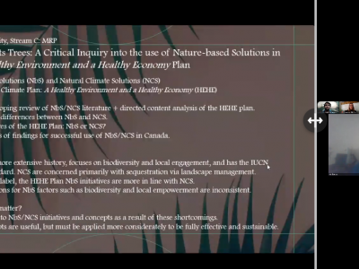 On Friday, November 18th, 2022, second-year students in the Master of Sustainability program presented their thesis and MRP research to their peers in their Transdisciplinary Seminar course (SSAS 5P04). Course instructor Dr. Jessica Blythe challenged the students to present their research in the 3 Minute Thesis format, which allows presenters one PowerPoint slide and three minutes to explain their research.